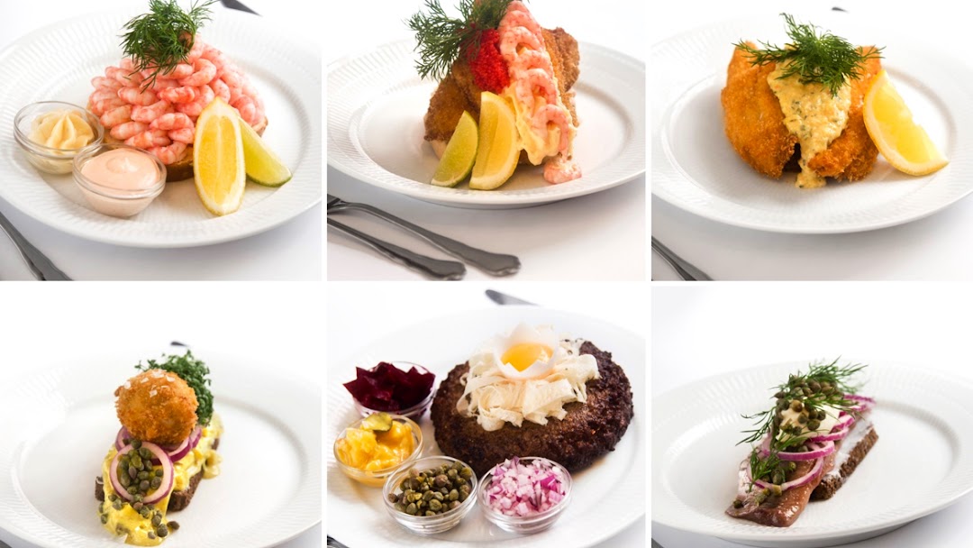 丹麥飲食文化的核心象徵,名稱直譯為「奶油與麵包」。在一片 Rugbrød(黑麥麵包)上堆疊食材,講究層次與擺盤的美學。傳統順序為:先吃魚類,再吃肉類,最後吃起司類。午餐時段(11:30–14:00)一人點 2–3 片即為一餐,搭配 Snaps 是最正統的體驗。